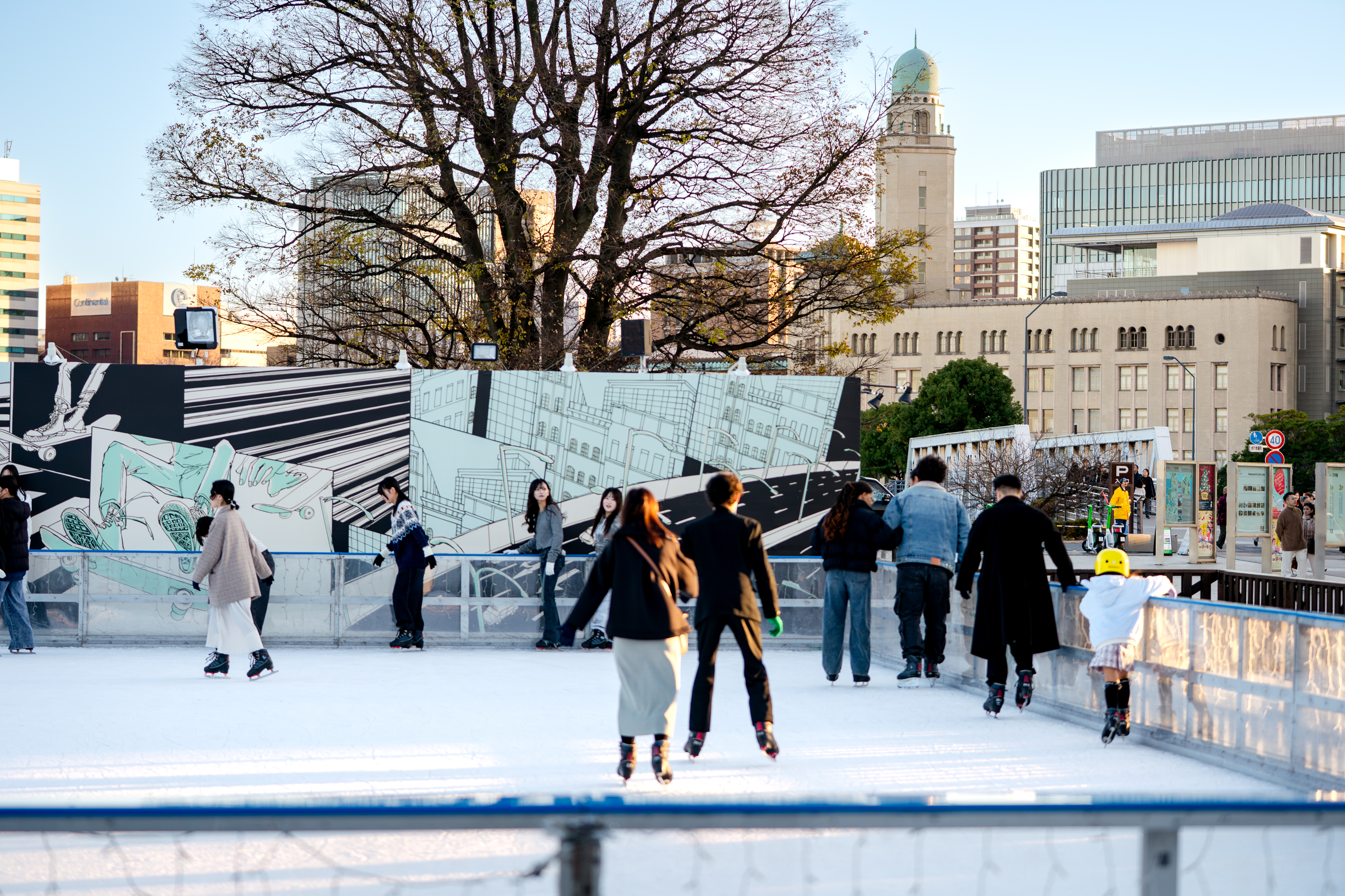 対して、スケートリンク上で人は一様に左に回る。